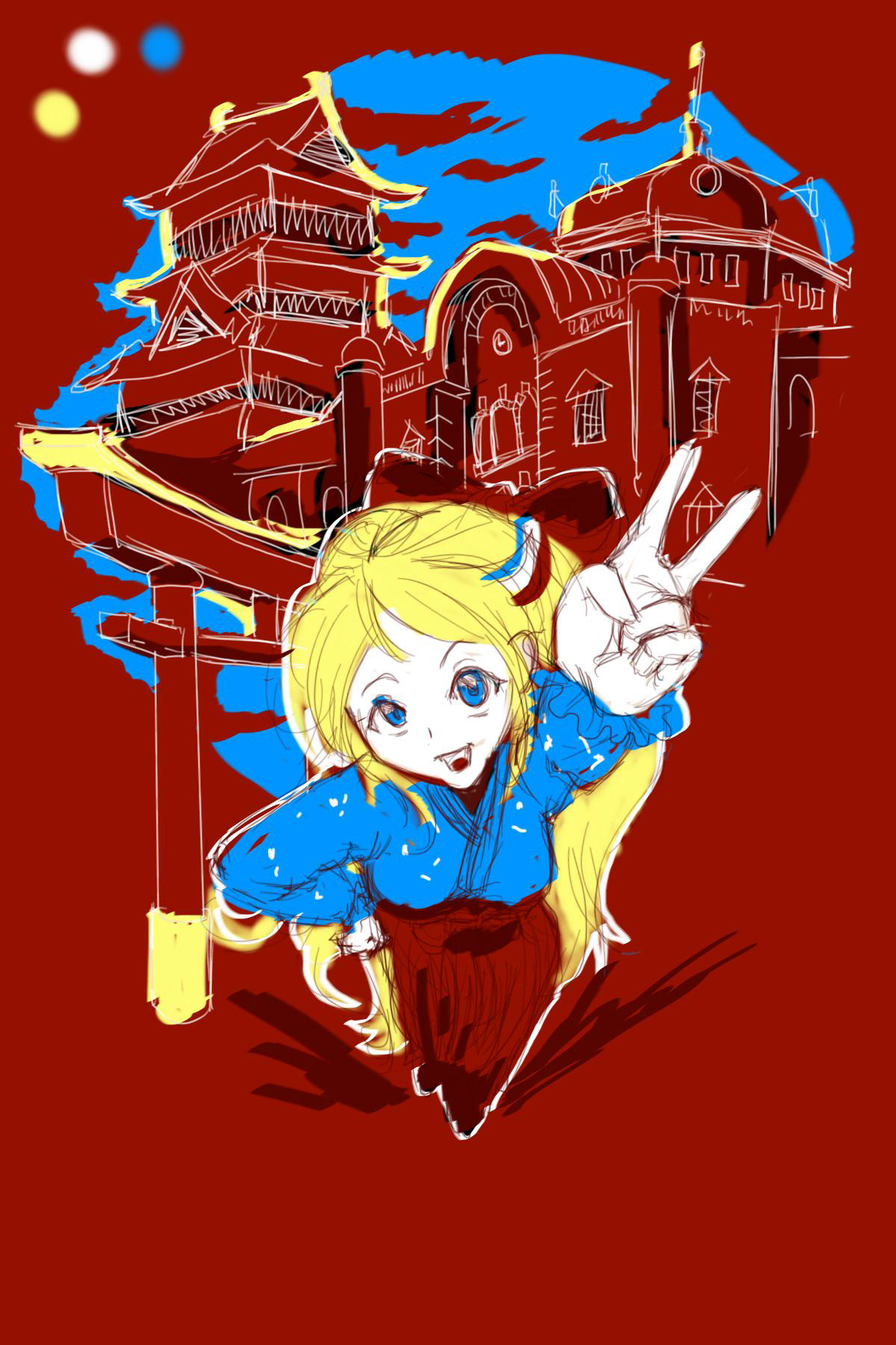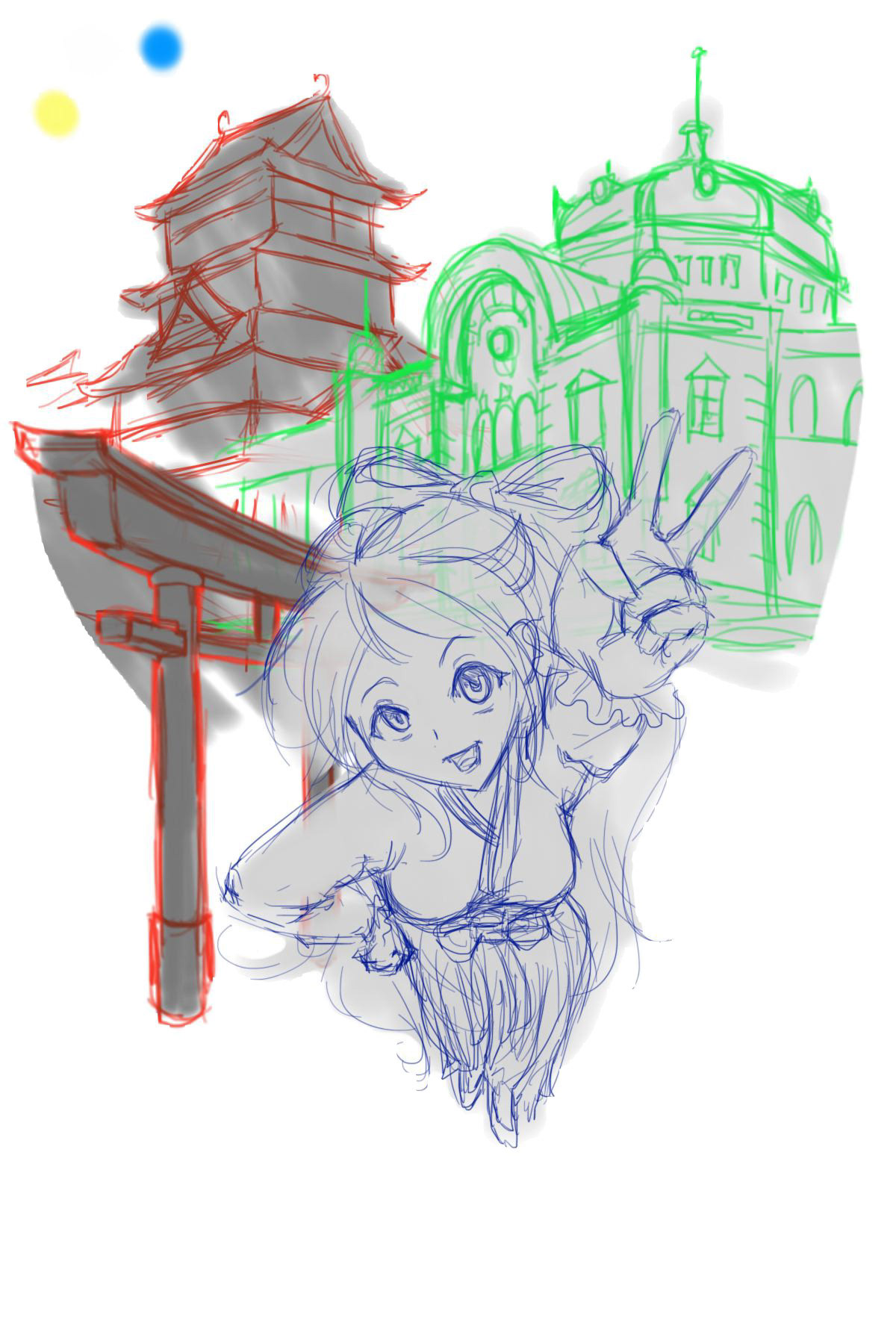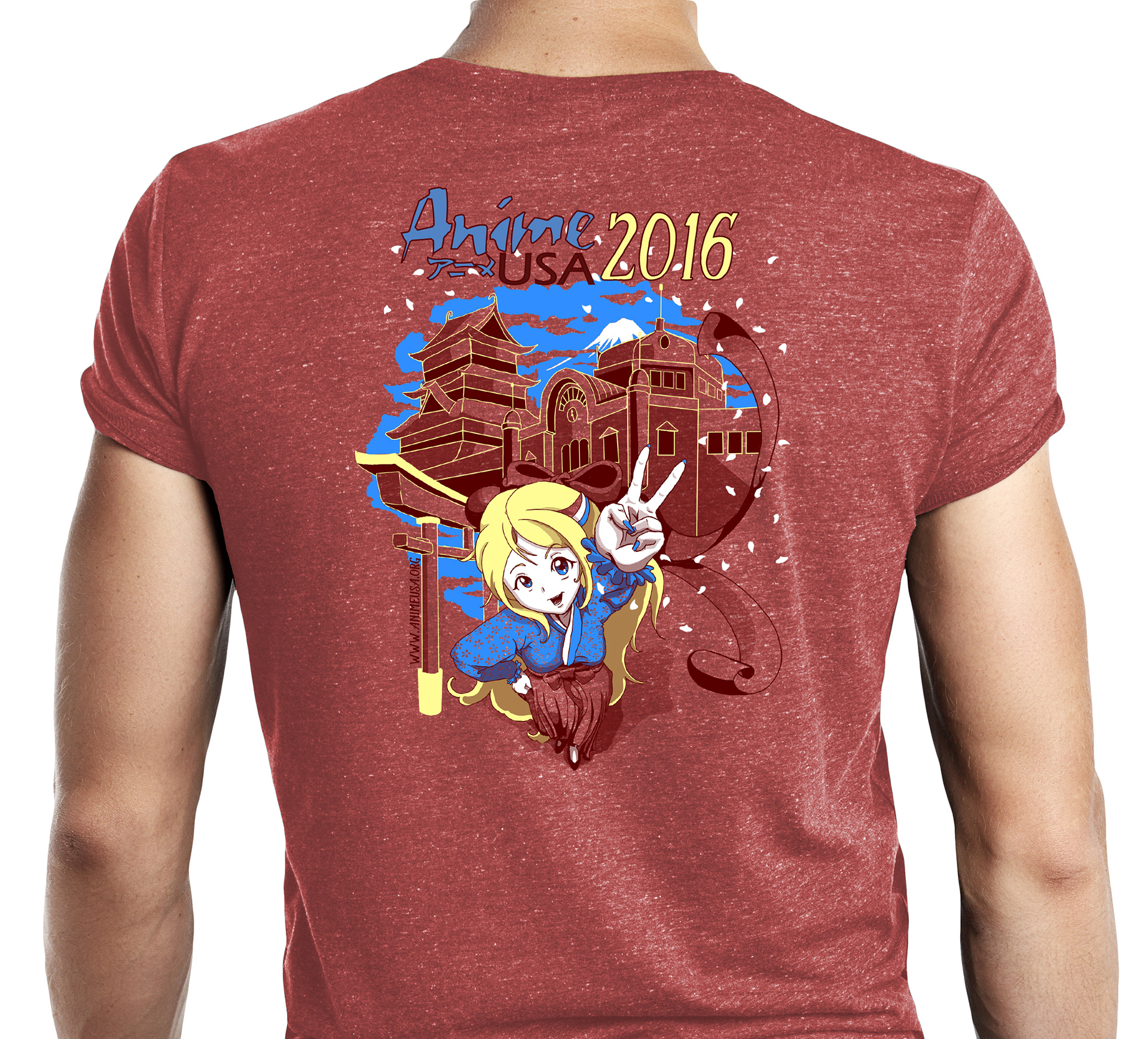 Meiji-Era Anime Shirt, 2016. Progress images for a T-Shirt Design for Anime USA. The theme was Meiji era and the colors were limited. In order to increase my colors, I incorporated the shirt color into the design. It allowed for less ink on the shirt as well, making it more comfortable to wear.
